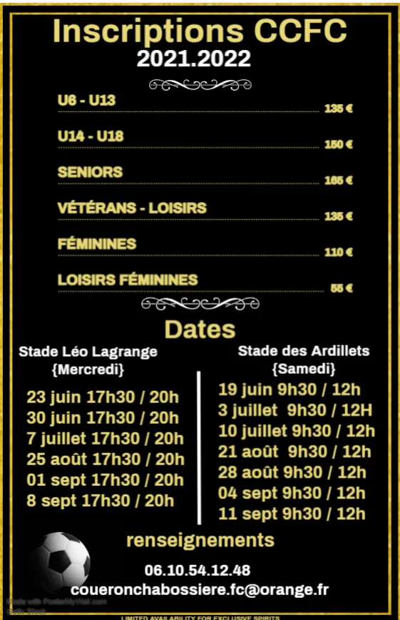 Renseignements : www.football-ccfc.fr (cliquez ICI ) 06 80 11 78 07 ou 06 10 54 12 48 ou inscriptions@football-ccfc.fr