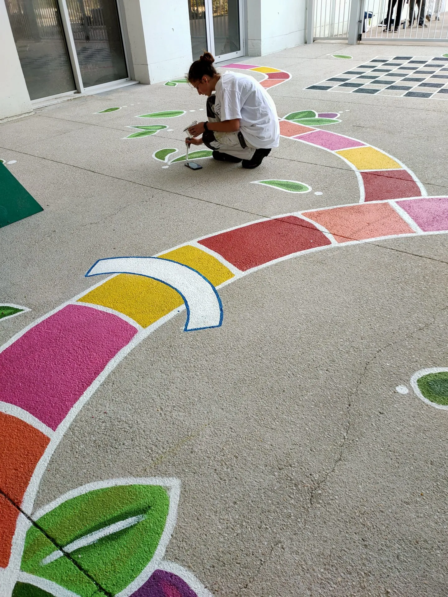 Nous proposons également des projets de décoration participatifs, tels que la réalisation de fresques collaboratives ou la création de jeux au sol, qui permettent d’embellir vos quartiers tout en renforçant le sentiment d’appartenance et de communauté.
