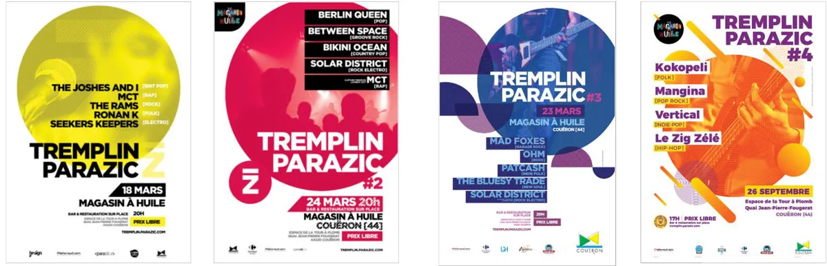 Des concerts sont organisés au Magasin à Huile, au Kiosque à Musique et à l’Espace de la Tour à Plomb à Couëron. Selon les opportunités, nous sommes également amenés à organiser d’autres événements sur le département.