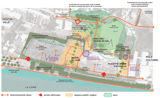 Ce projet s’adapte aux spécificités paysagères, naturelles et techniques du site et propose une nouvelle manière d’habiter les bords de Loire, entre patrimoine industriel réinventé, biodiversité préservée, au bénéfice de la qualité de vie des futurs habitants du quartier. Les espaces publics et leurs usages seront fédérateurs du nouveau quartier, avec le Jardin de Loire, la Placette Jardin culturelle et le Parc des Points de vue.