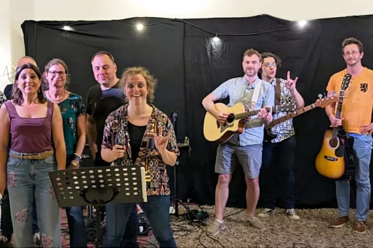 Vous pourrez entendre aussi bien du reggae, du folk, du rock, de la pop … Autour d’une chanteuse, d’un batteur et d’un bassiste vous découvrirez pas de moins de cinq guitaristes pleins d’enthousiasmes communicatifs qui vous ferons vivre un moment passionnant.