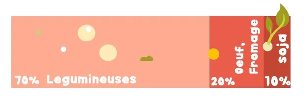 En proportion, nos menus végétariens sont à 70% composés de légumineuses, 30% composés d’œuf/fromage