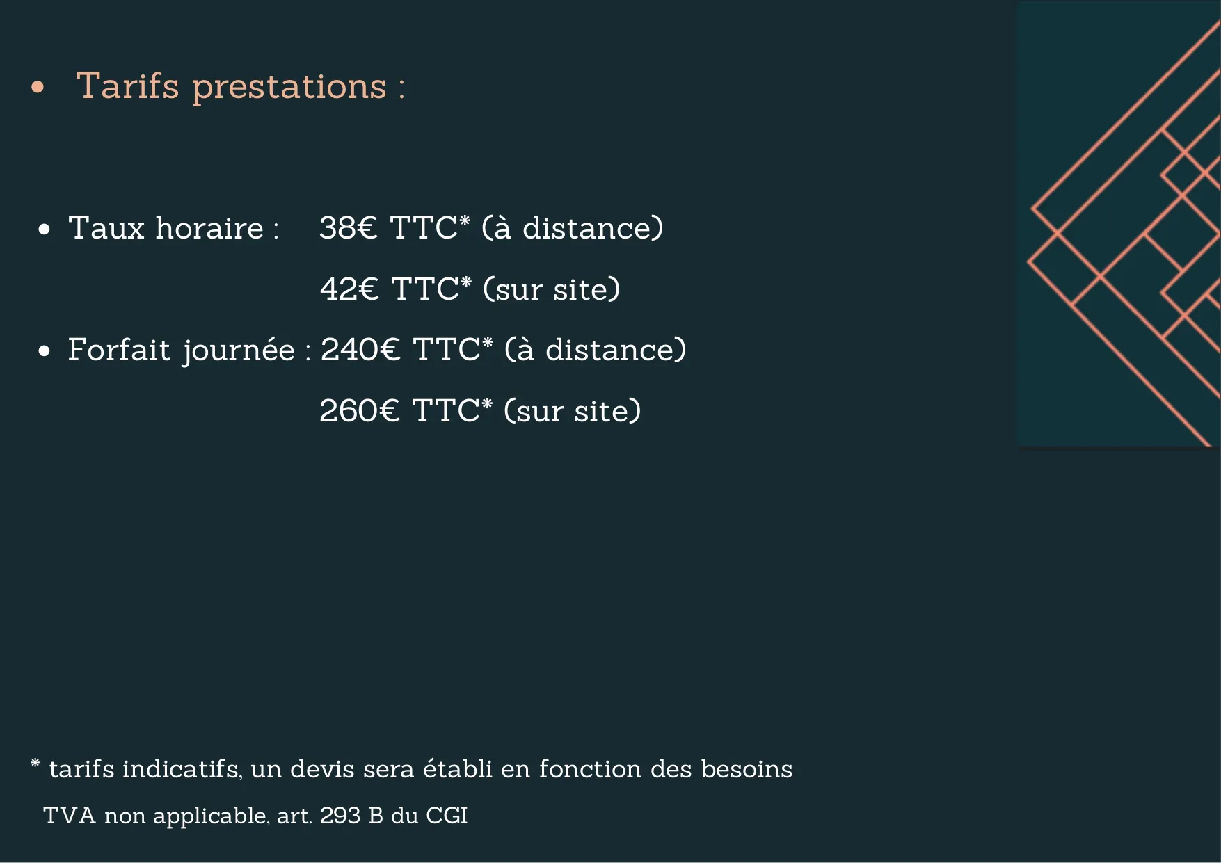 N’hésitez pas à me contacter afin d’étudier vos besoins.