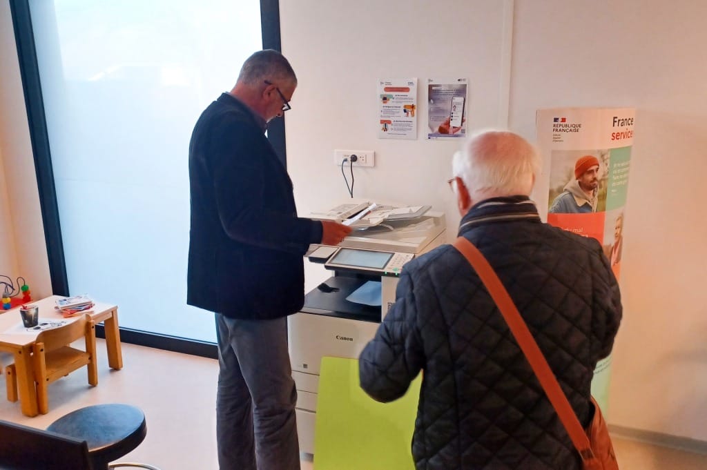 Des postes informatiques avec accès gratuit à internet, imprimante, scanner et copieur sont mis à disposition des usagers pour effectuer leurs démarches administratives en ligne.