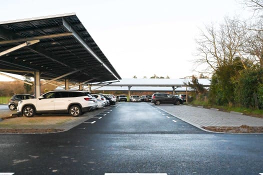 Le parking relais comptera un total de 233 places à l’issue de la phase finale du chantier, dont 5 seront réservées aux personnes à mobilité réduite. Des bornes de recharge pour véhicules électriques seront également installées. Le projet d’agrandissement du parking intègre 1 500 m² de panneaux photovoltaïques. Cette installation permet de produire de l’énergie tout en apportant de l’ombre aux véhicules. Les arbres de qualité présents sur le site sont préservés, afin de conserver la qualité paysagère du lieu.