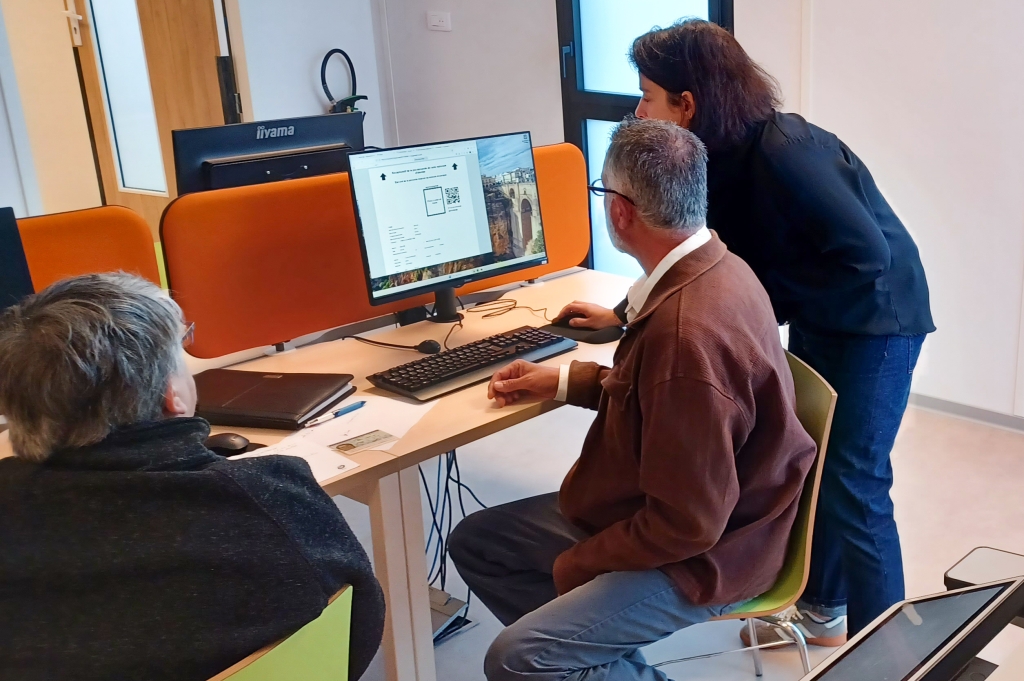 Des postes informatiques avec accès gratuit à internet, imprimante, scanner et copieur sont mis à disposition des usagers pour effectuer leurs démarches administratives en ligne.